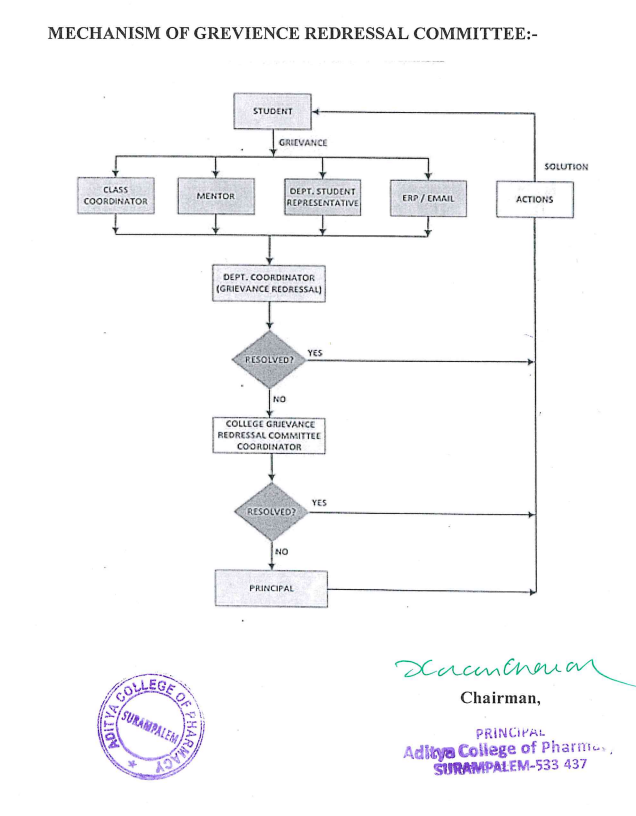 - The department level grievances will be attended by concerned class Coordinators, Counsellors’ & Department Heads